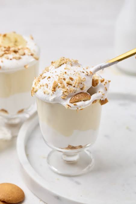• Build Pudding Cups: In two glasses, layer crushed wafers at the bottom, followed by a tablespoon of whipped topping and banana pudding. Repeat the layers, finishing with whipped topping, crushed wafers, and a slice of banana on top.
