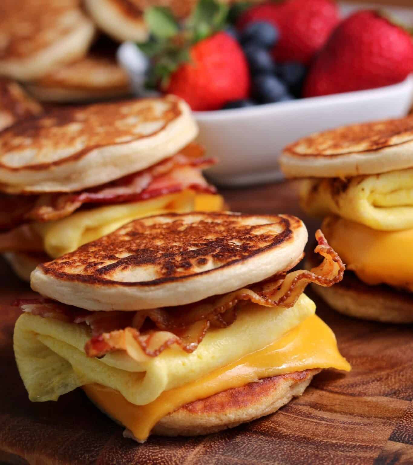 • For the sausage egg and cheese version in photos, add 1 of my chicken breakfast sausage patties and a slice of American cheese.