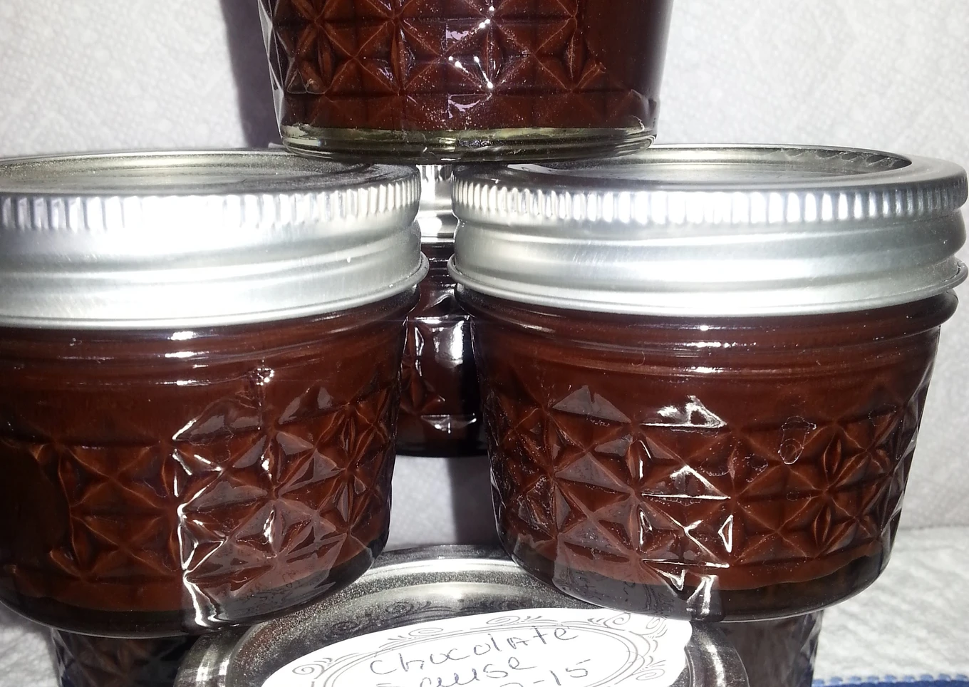 On a dishtowel place your hot jars. Using your funnel in each jar ladle the mixture into the jars leaving 1/4” head space. Remove air bubbles and refill to the proper head space if necessary.