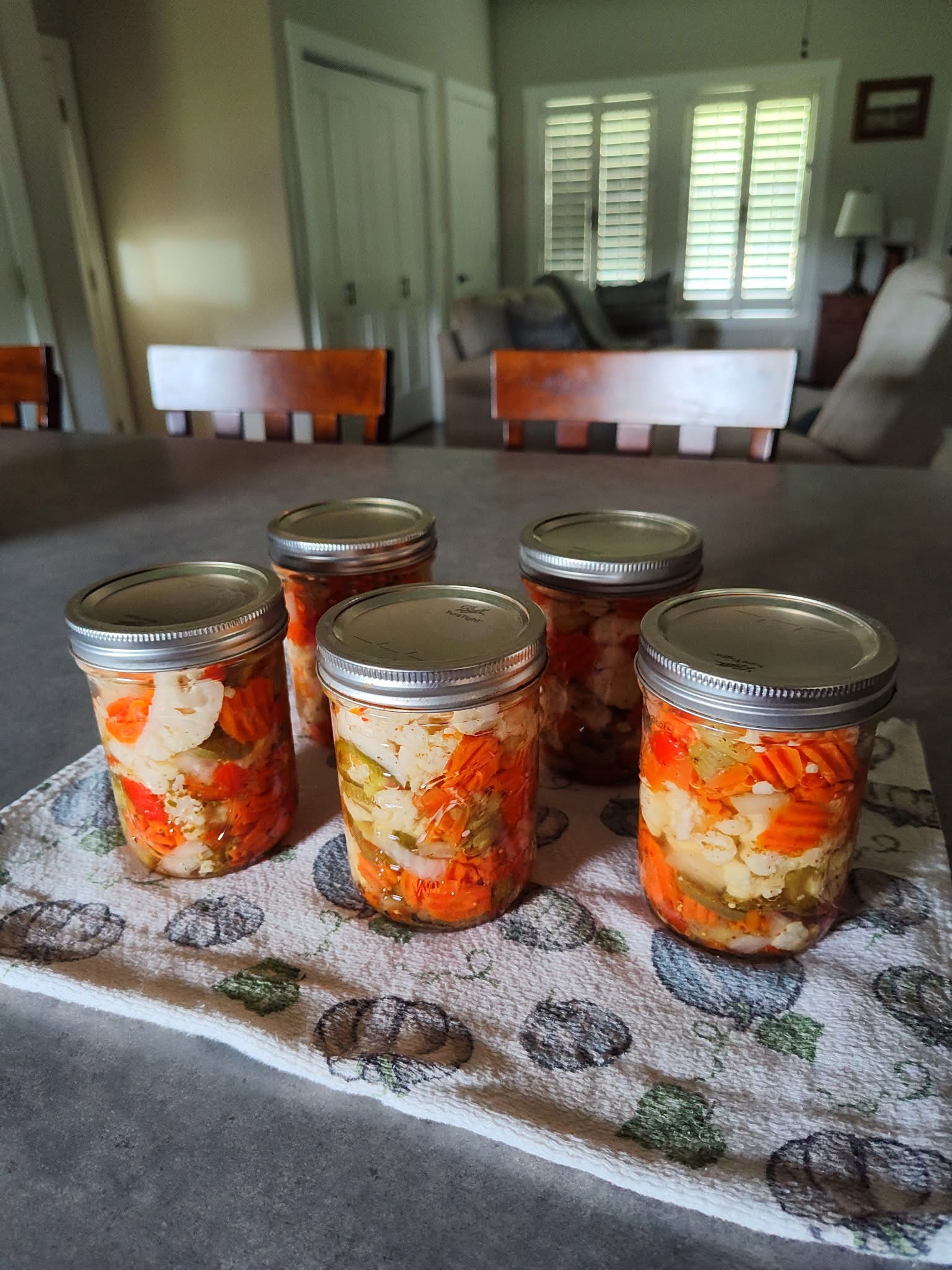 This recipe is intended as a healthy, flavorful way to preserve vegetables, but always eat in moderation. People with allergies to any ingredients (such as garlic, mustard seeds, or peppers) should consult a healthcare provider or modify the recipe accordingly. Always follow safe home-canning practices to prevent contamination or spoilage.