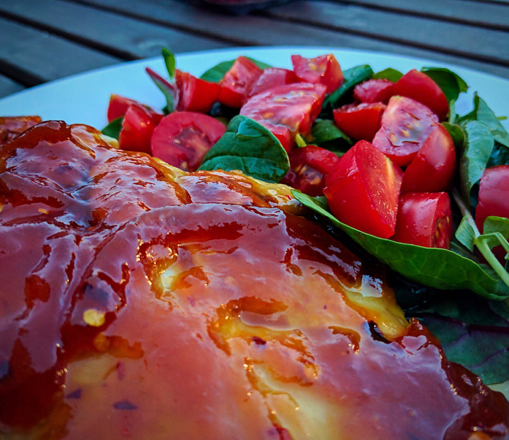 meanwhile, in a microwave safe bowl mix together the chilli flakes, dijon mustard and marmalade