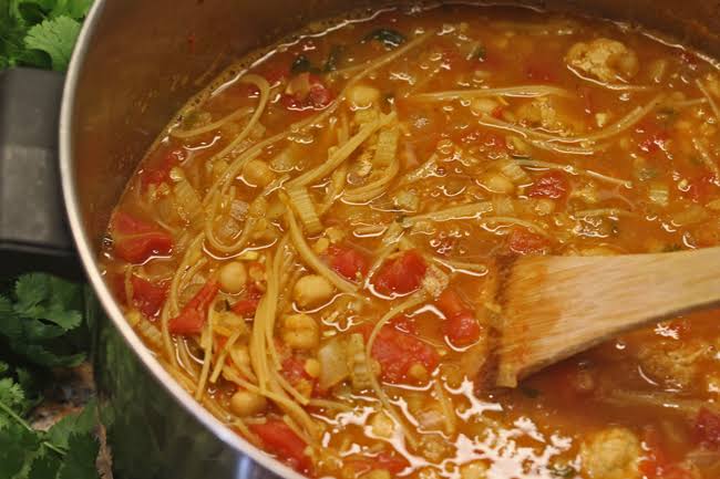 If you’re a fan of North African cooking you’ll love this Moroccan spiced chickpea and noodle soup. It’s perfect for this time of year.