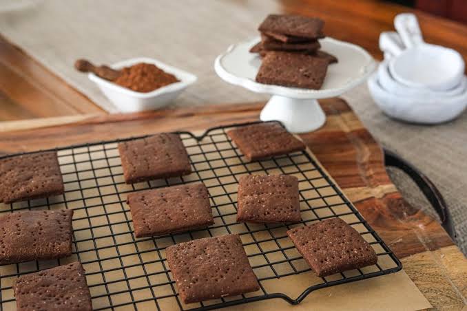 Rich chocolate flavored graham crackers made with sourdough discard – these crackers are so good, I kept coming back for more.