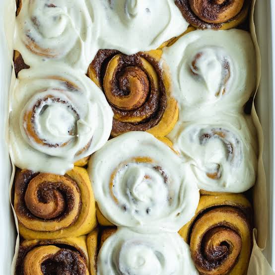 - Spread over the cinnamon rolls. If serving immediately, spread the cream cheese frosting over the rolls while they are still warm.